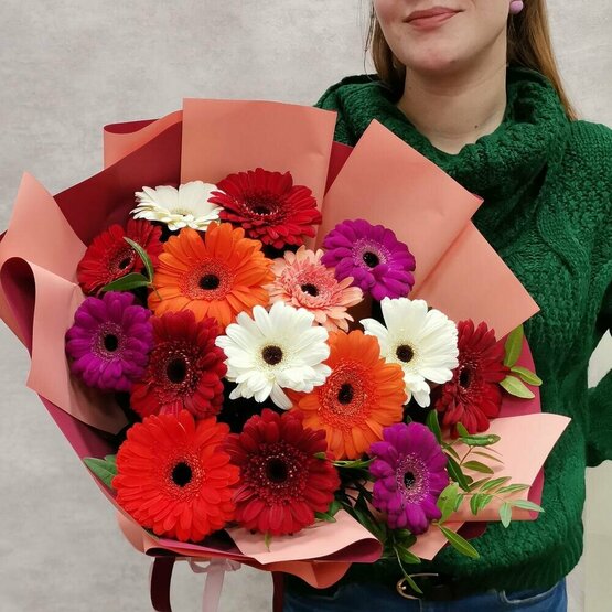 Красивый и сочный букет гербер никого не оставит равнодушным! Доставка цветов. Заказать цветы недорого. С любовью к Вам и к цветам, команда Зеленая лиса.