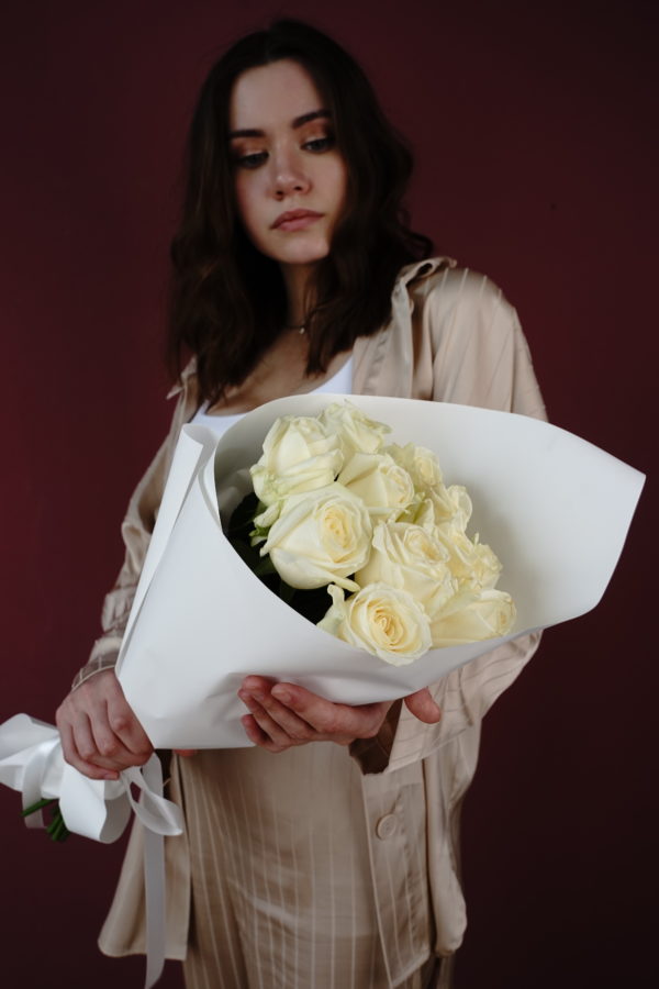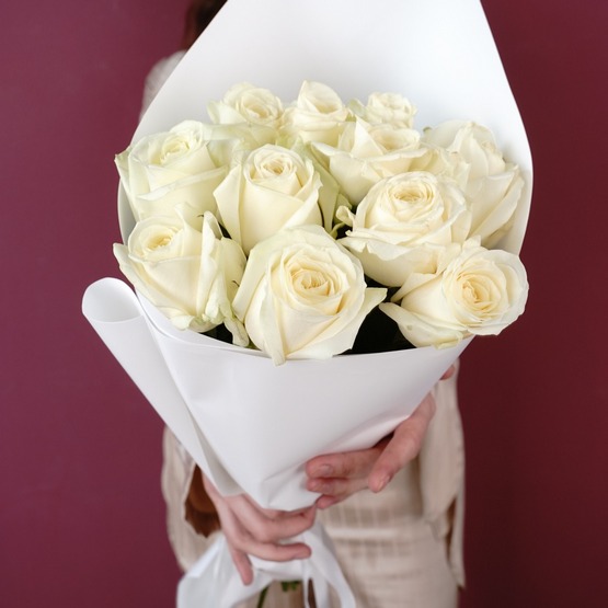 Доставка цветов в Москве » Розы » 11 российских роз (Аваланч), белые