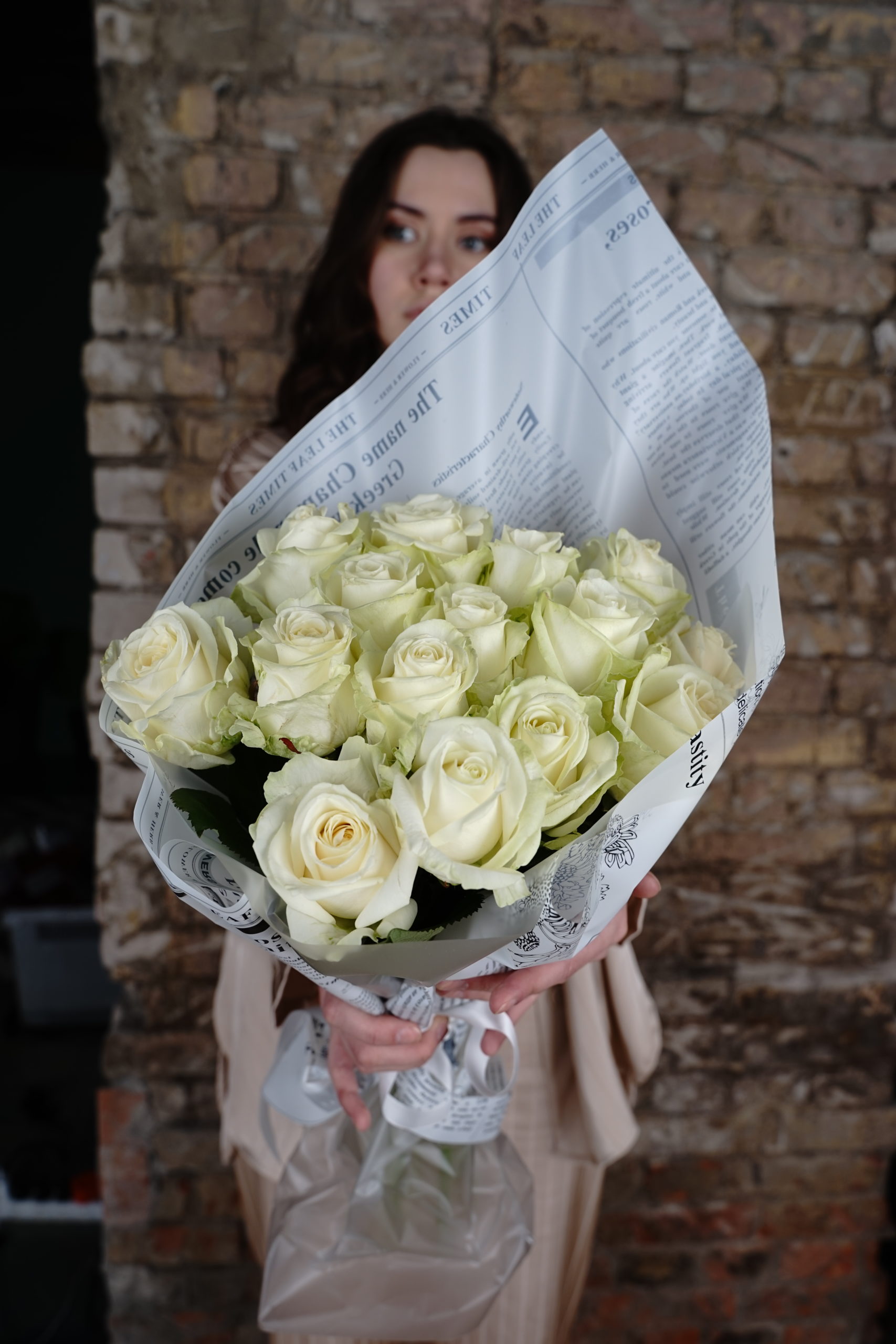 Доставка цветов в Казани » Розы » 15 российских роз (Аваланч, белая)