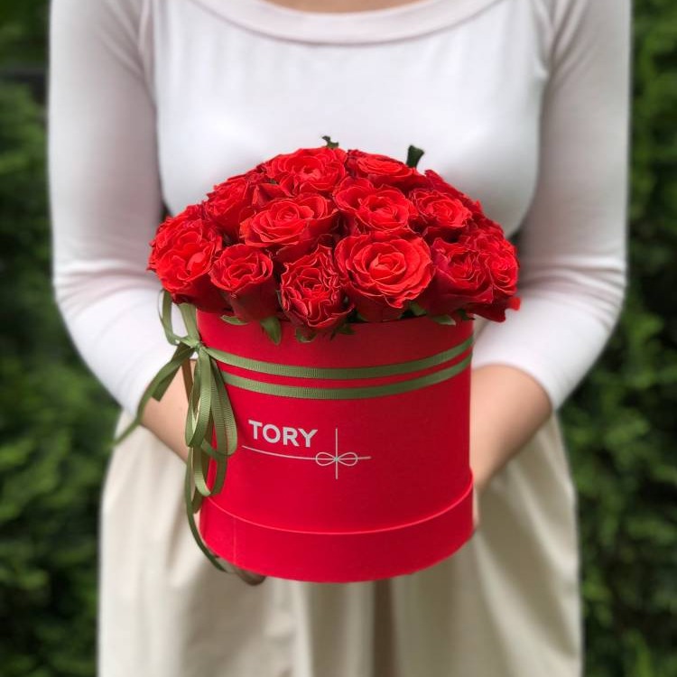 Доставка цветов в Москве » Розы » 21 красная роза Эль Торо в шляпной коробке