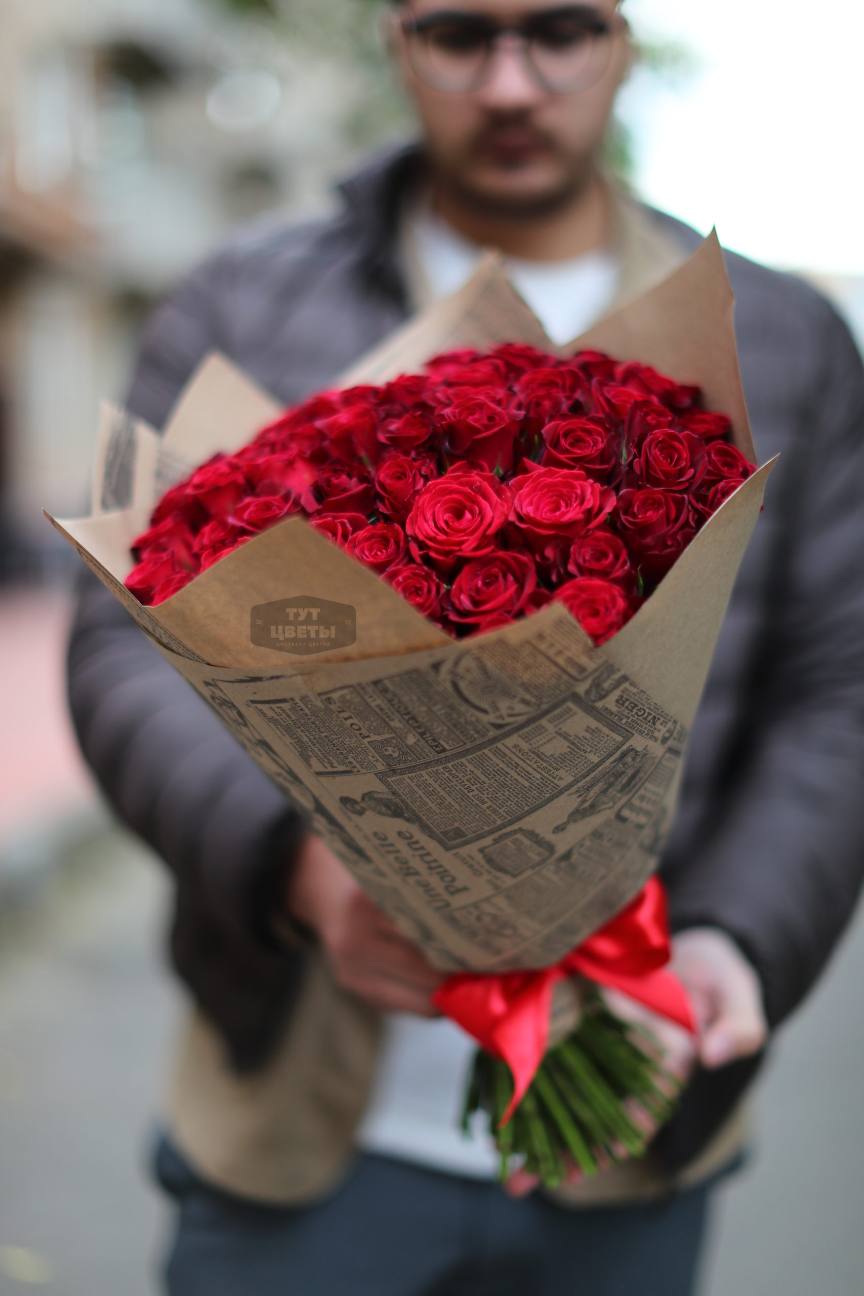 Доставка цветов в Карачаевске » Розы » 51 красная роза в крафте