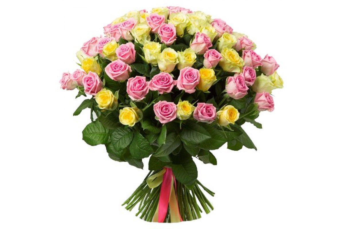 75 желтых и розовых роз в Тольятти