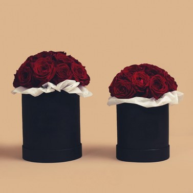 Доставка цветов в Новосибирске » Розы » Красные розы в маленькой и средней черной коробке