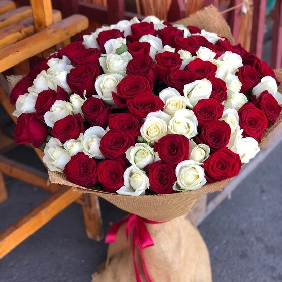 Букет из красных и белых роз без слов расскажет о ваших чувствах. Эти классические цвета сочетают элегантность и стиль. Можете быть уверены – получить такой роскошный подарок поистине приятно, а дарить, как известно, приятно вдвойне! Доставка цветов. Заказать цветы недорого. С любовью к Вам и к цветам, команда Зеленая лиса.