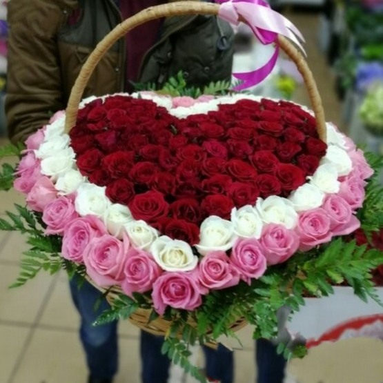 Сердце из 101 розы в корзине в Пересвете