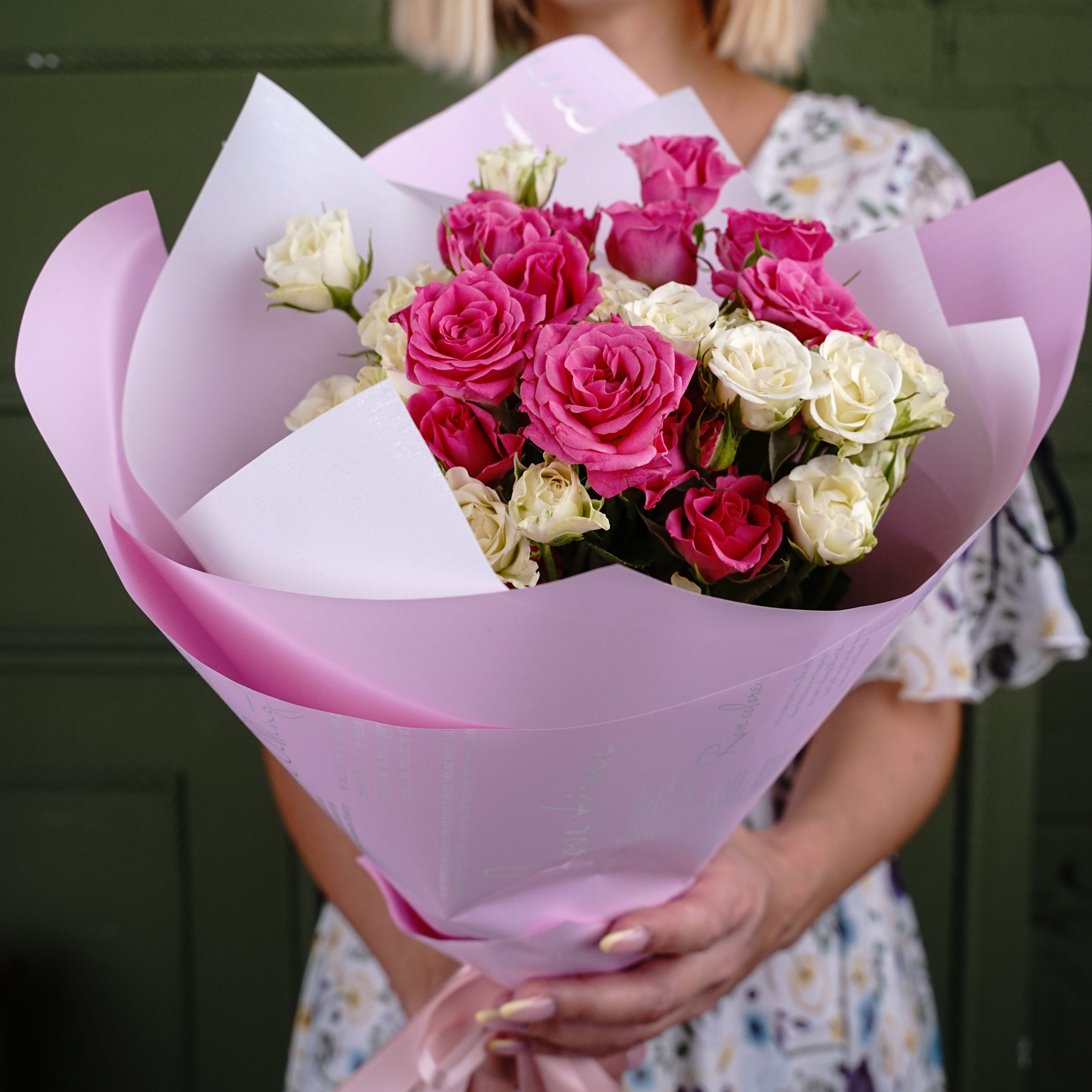 Букет из 9 кустовых роз бело-малиновые в Казани