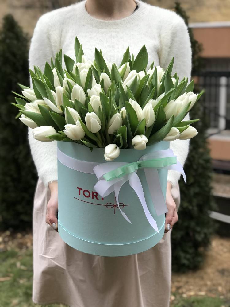 Состав: тюльпан, оазис, коробка, лента Доставка цветов. Заказать цветы недорого. С любовью к Вам и к цветам, команда Зеленая лиса.