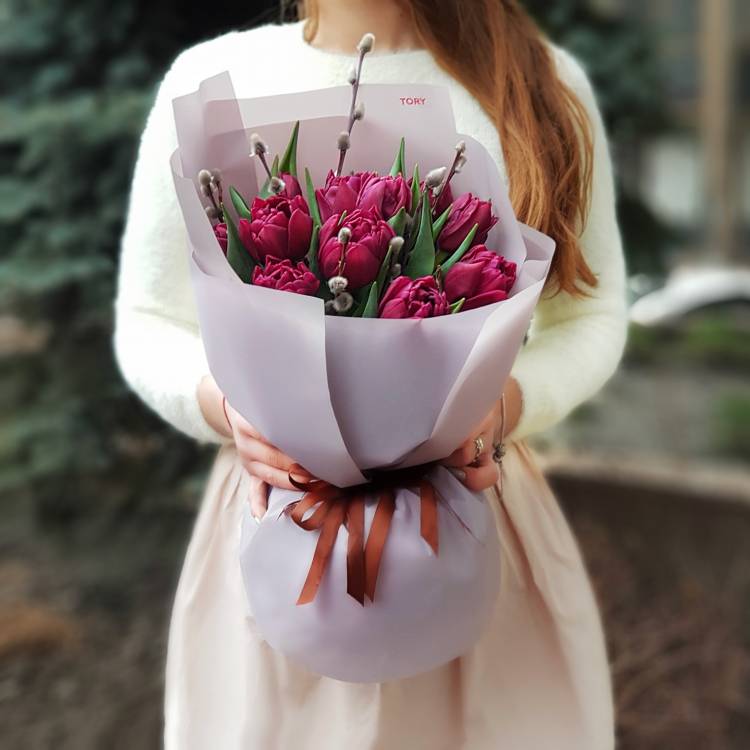 Состав: тюльпан, упаковка Доставка цветов. Заказать цветы недорого. С любовью к Вам и к цветам, команда Зеленая лиса.