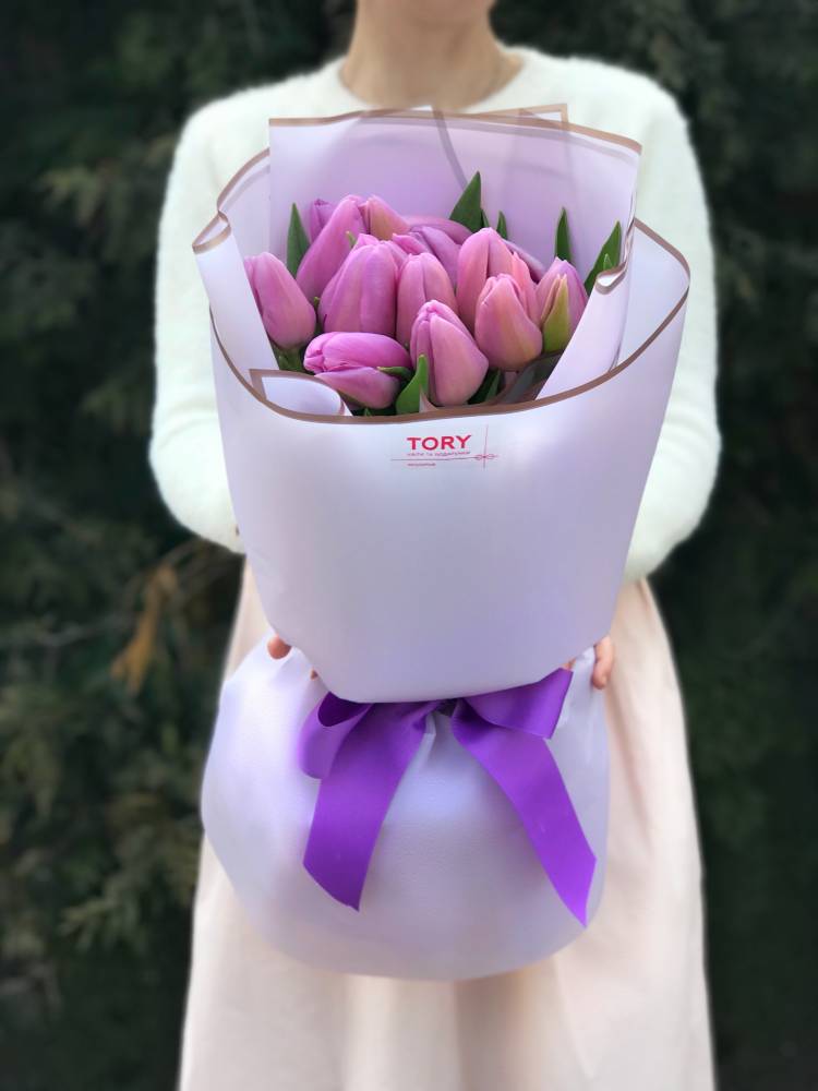 Доставка цветов в Рязани » Тюльпаны » Букет 15 лиловых тюльпанов