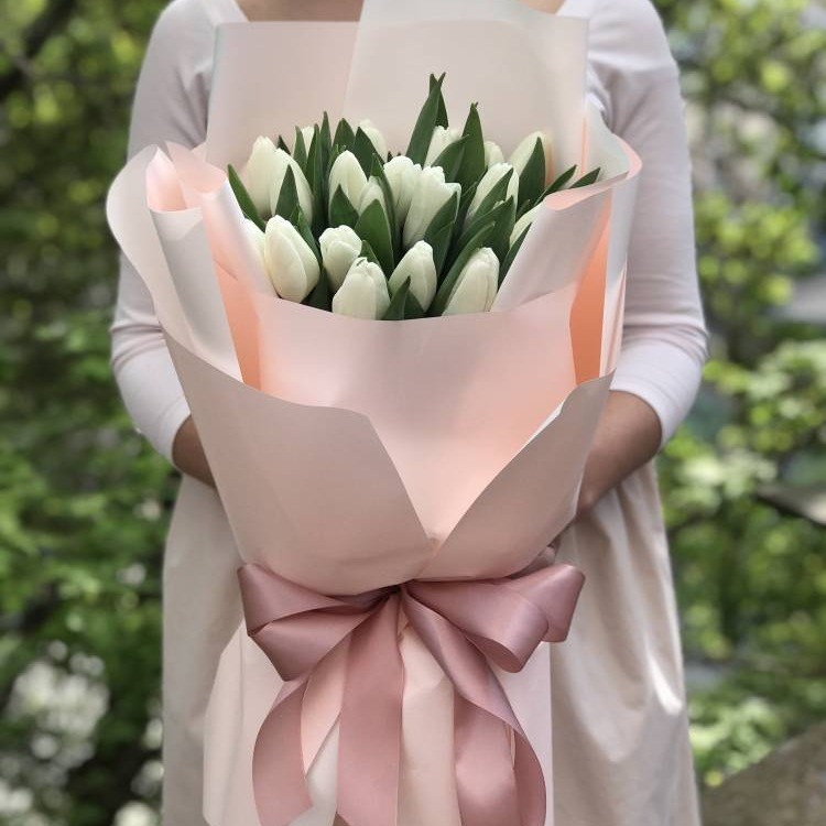 Доставка цветов в Рязани » Тюльпаны » Букет 25 белых тюльпанов