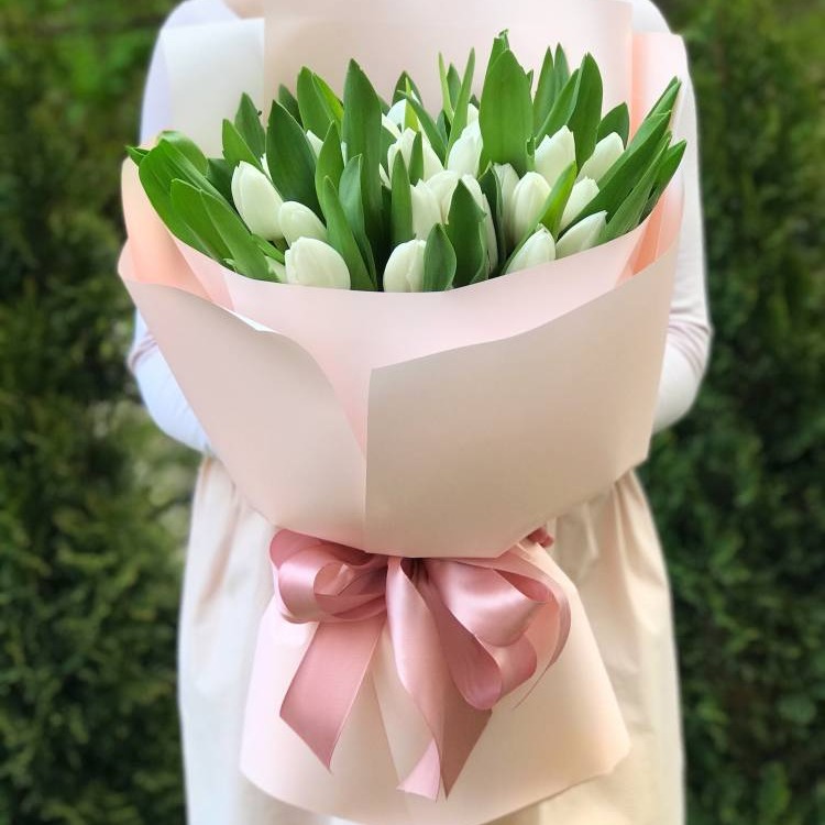 Доставка цветов в Твери » Тюльпаны » Букет 35 белых тюльпанов