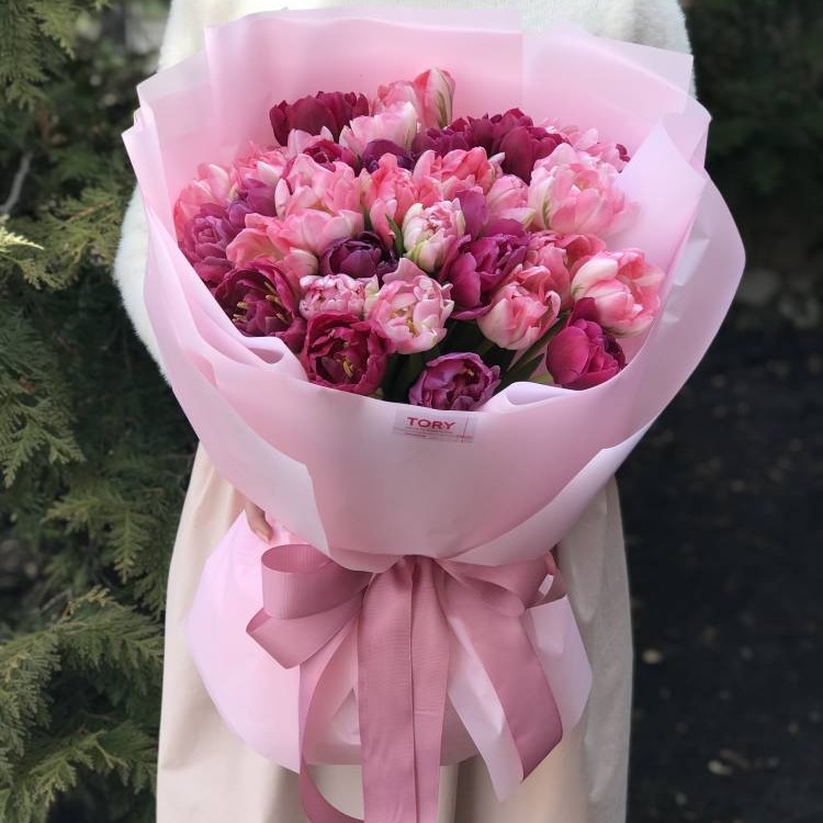 Доставка цветов в Сочи » Тюльпаны » Букет 35 тюльпанов микс