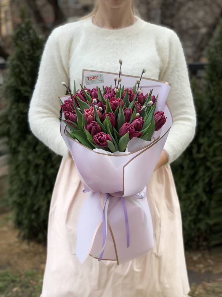 Букет тюльпанов "Оттенок бургунди" в Краснодаре