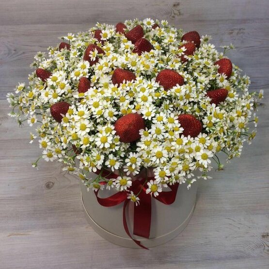 Естественно, что это букет из клубники с ромашкой, понравится любому адресату без исключения, ведь это симбиоз неповторимой красоты, аппетитного аромата и сладкого вкуса!!! Доставка цветов. Заказать цветы недорого. С любовью к Вам и к цветам, команда Зеленая лиса.