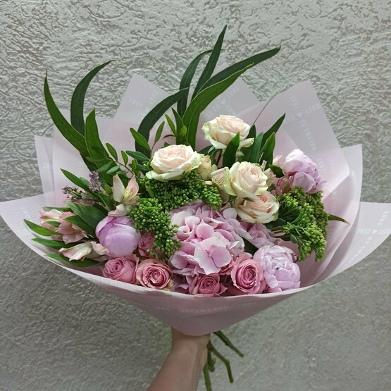 Авторский букет в пионами и ассорти цветов ? Доставка цветов. Заказать цветы недорого. С любовью к Вам и к цветам, команда Зеленая лиса.