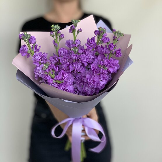 Моно букет из фиолетовой маттиолы Доставка цветов. Заказать цветы недорого. С любовью к Вам и к цветам, команда Зеленая лиса.